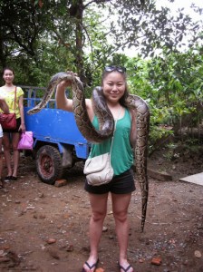 We headed for the Mekong Delta on Tuesday morning for a 2 day 1 night tour (which only cost us approximately $25). The Mekong Delta is where most of Vietnam’s rice is produced with lush paddies and villages surrounding the river. We went to Ben Tre where we went on a small boat on the canal, tasted honey straight from a beehive, had a snake wrapped around me, saw coconut candy being made and ate local fruits. We also visited the Big Buddha and had lunch in a small village. At night, we based ourselves in Can Tho which is known as the epicentre of the Mekong Delta as it is the political, economical, cultural and transportation hub of it all. In comparison to HCMC, the traffic was extremely quiet and definitely more relaxed. We walked along the riverside and ate dinner and bought delicious rambutans for only 9,000 dong a kilo, before hitting the hay early.