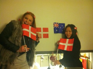 Kitchen 7 had their Tour de Chambre – it translates to “tour of the chambers” and you set up a unique drink and game and go to each room in your dorm. I wasn’t original at all in choosing an “Australia” theme but it was the easiest. Welcome shots were actually Polish vodka (bison grass flavour) but I put food colouring in to create a green and gold theme. I bought a goon bag and the game I played was a quiz based on answering Australia related questions – if you got it wrong, you got gooned. Tim Tams were also a treat as well (have to admit the Danes did not appreciate it as much as an Aussie would!) Liz joined in which was fun.