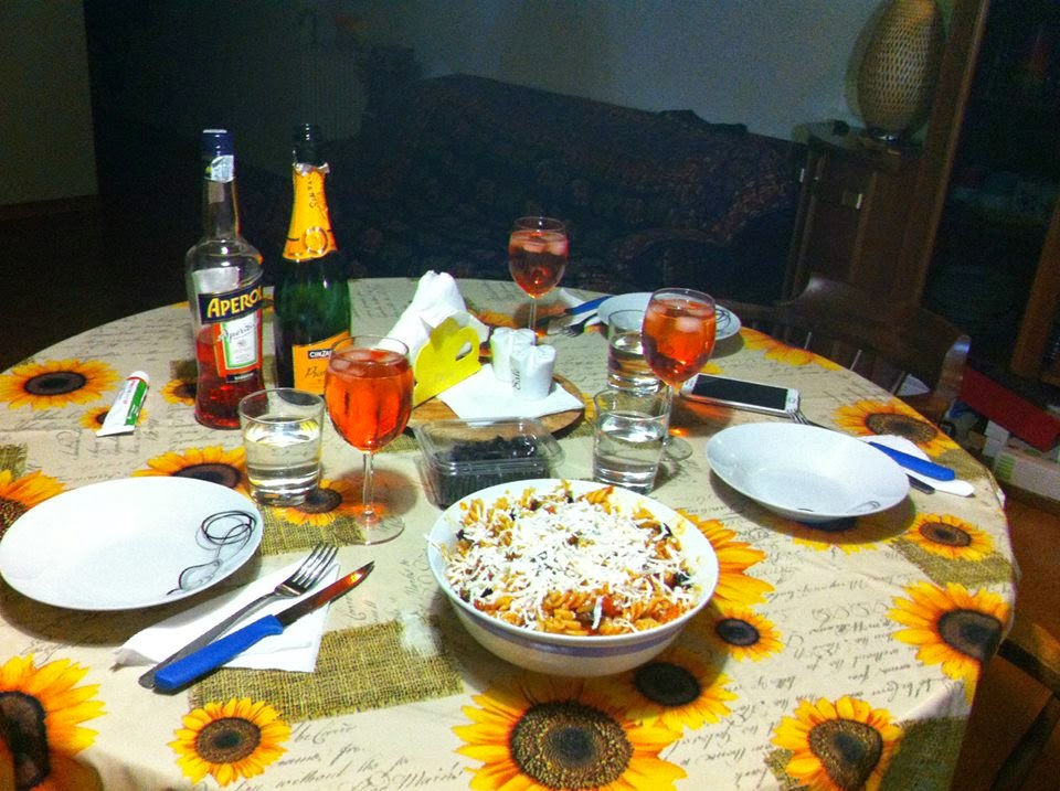 | Pasta Alla Norma with Aperol Spritz – amazing first night dinner! |