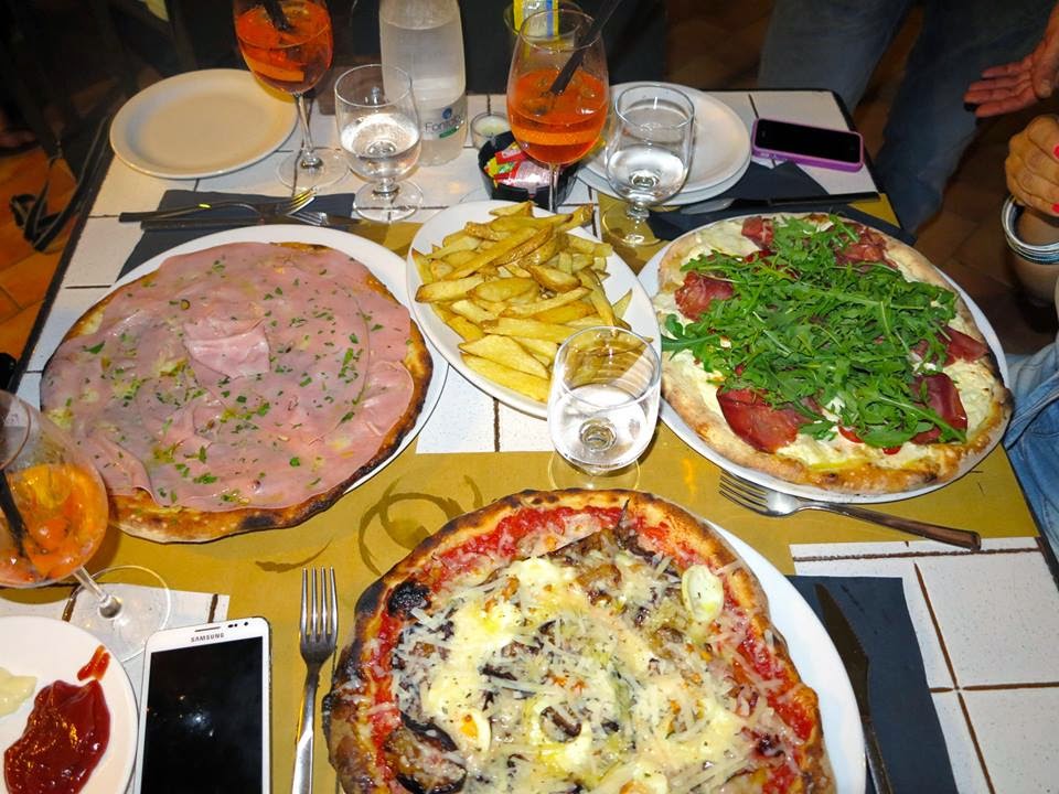 Another night, we went to Trattoria del Cavaliere – a typical Sicilian restaurant to try some authentic food. The red wine was flowing and we tried many different dishes including horse meat! It is a specialty in Sicily and was very lean and quite flavoursome. For the entree, we had a mix of vegetables, parmigiana, eggplant with cheese, bread crumbed zucchini etc. which was good! Emily and I shared a seafood linguine with prawns, octopus, mussels which was so delicious and for dessert, we shared a lemon sorbet with mulberry. Much recommended place to go for authentic food and good prices!