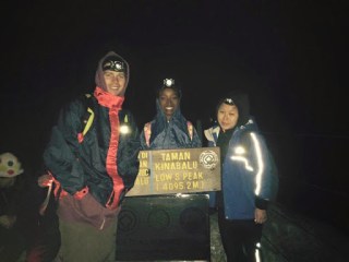 The next morning I was up by 1:30am and went down for supper at 2am. I wasn’t feeling great but ate some food to get my energy up. I left at 2:40am and headed up to the summit. Luckily it wasn’t raining and not too cold but trail was still very wet. The first 500m up was a challenge for me as I was experiencing some altitude sickness but I took some nurofen and was feeling better. We had to climb up steep rock faces using ropes and then there was gradually steep ascent up on naked granite rock. I took it nice and slowly and it took 2.5 hours to get to the summit (4,095.2m). When I reached the summit, I felt a huge sense of achievement! We enjoyed the sunset and slowly made our way back down to Laban Rata.