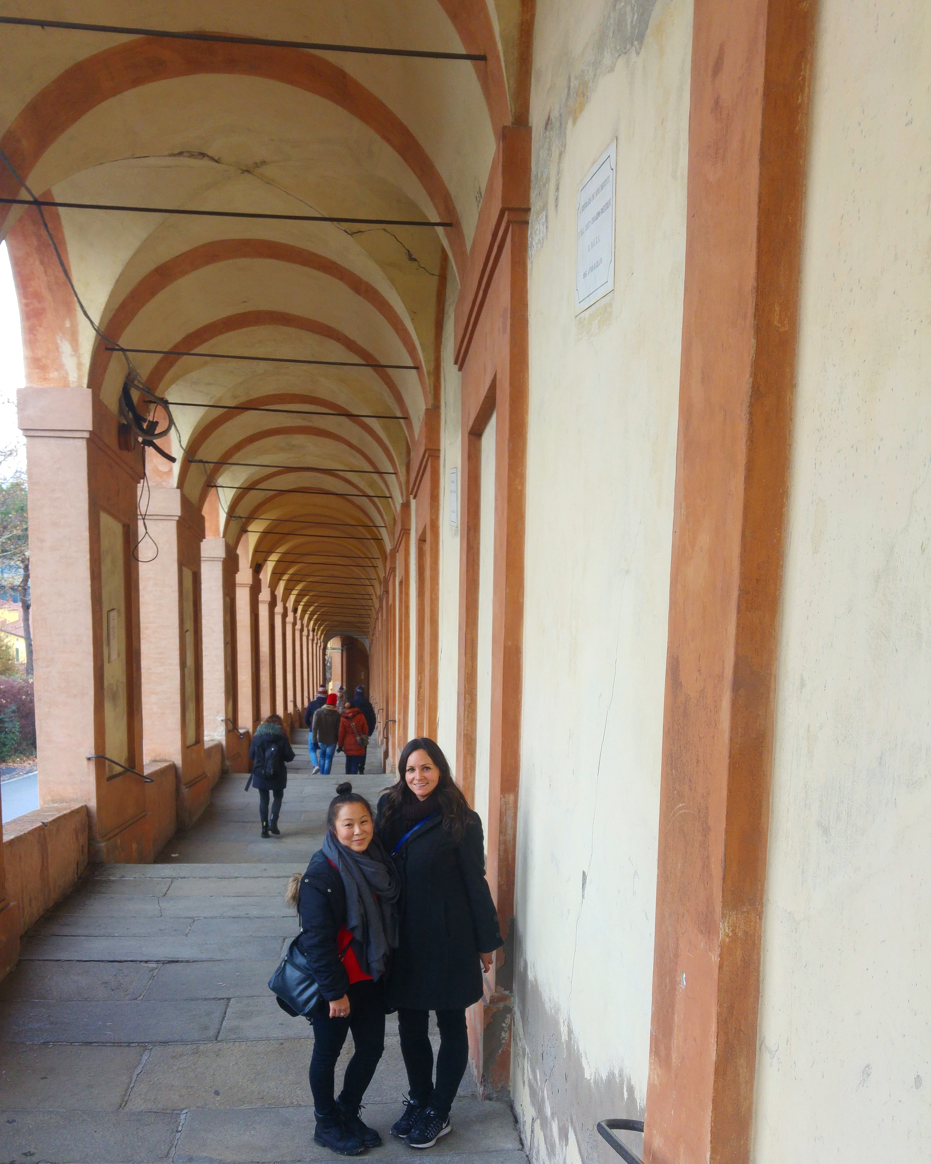 We walked around the city and explored Piazza Maggiore and then headed towards the Santuario della Madonna di San Luca basilica. There are porticos covering around 40km of the city, so even in rainy weather, you won’t ever get wet. We started from Piazza di Porta Saragozza and walked under the porticos all the way up. As we were walking, it started snowing which was quite cool too!