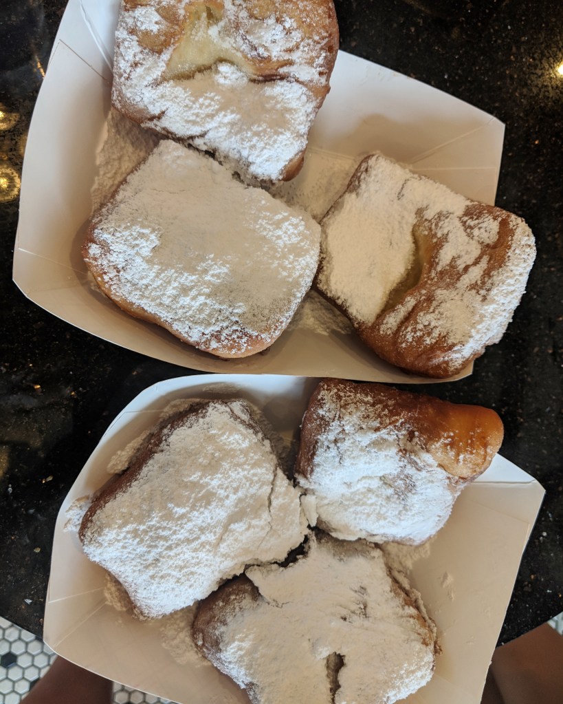 Nearby is Cafe Du Monde which is famous for the beignets. The line to eat in was super long so we opted for the take away line.