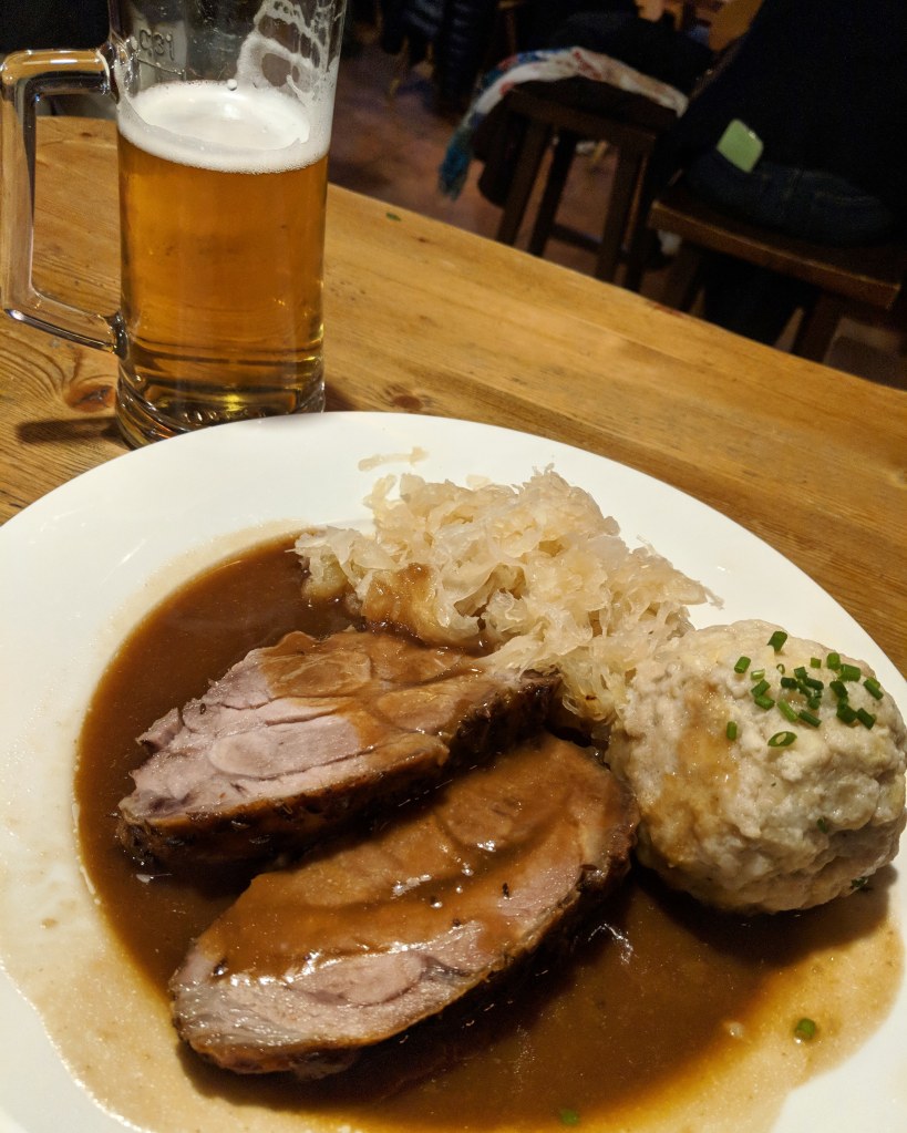 For dinner, I went to Zum Zirkelwirt and had their roast pork and a beer. It was very hearty and filling!