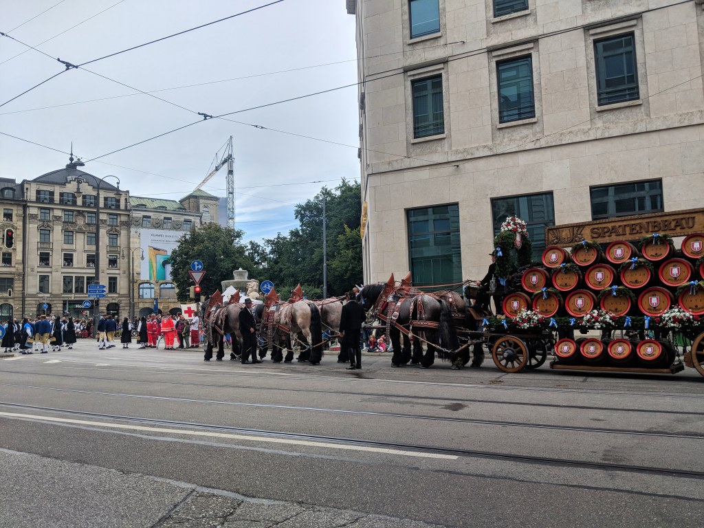 As it was the first day of Oktoberfest, people line up at 6-7am to try get a table at one of the tents. We were lucky to get into the Schutzen tent after 2pm and we had a really fun time, drinking the massive steins and enjoying the atmosphere.
