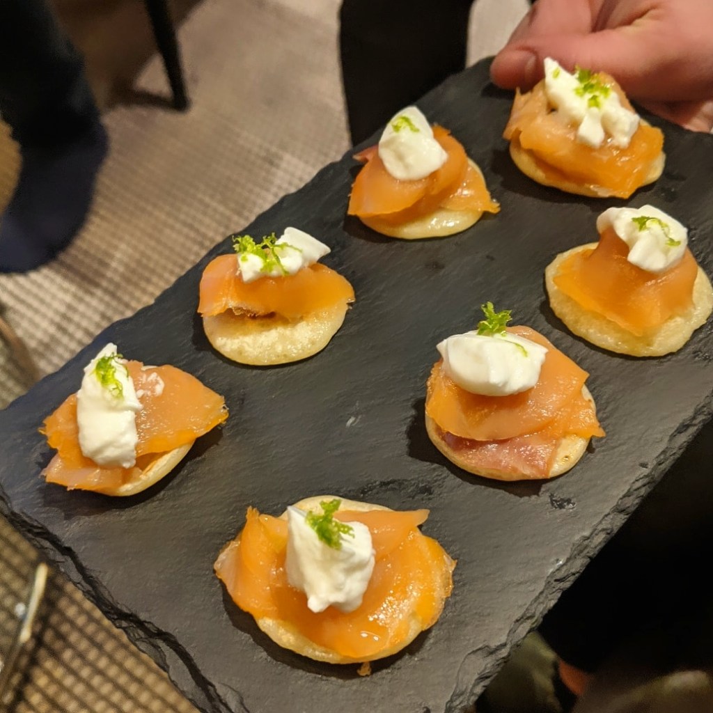 For dinner, we started off with two canapes and the starter was a pumpkin risotto, followed by pork tenderloin and dessert being creme brulee. We finished off with some cheese and wine.