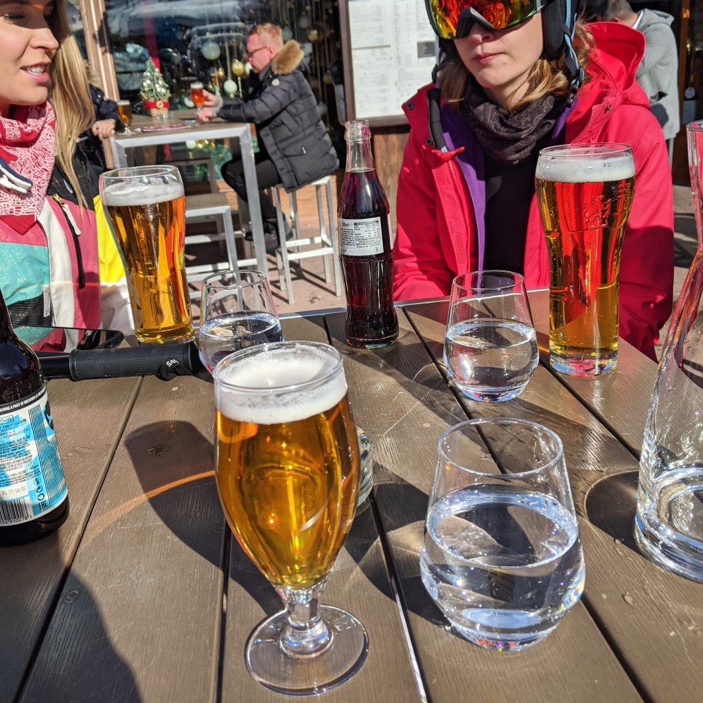 We did a few runs then stopped at La Sittelle for mountain views and some morning beers.