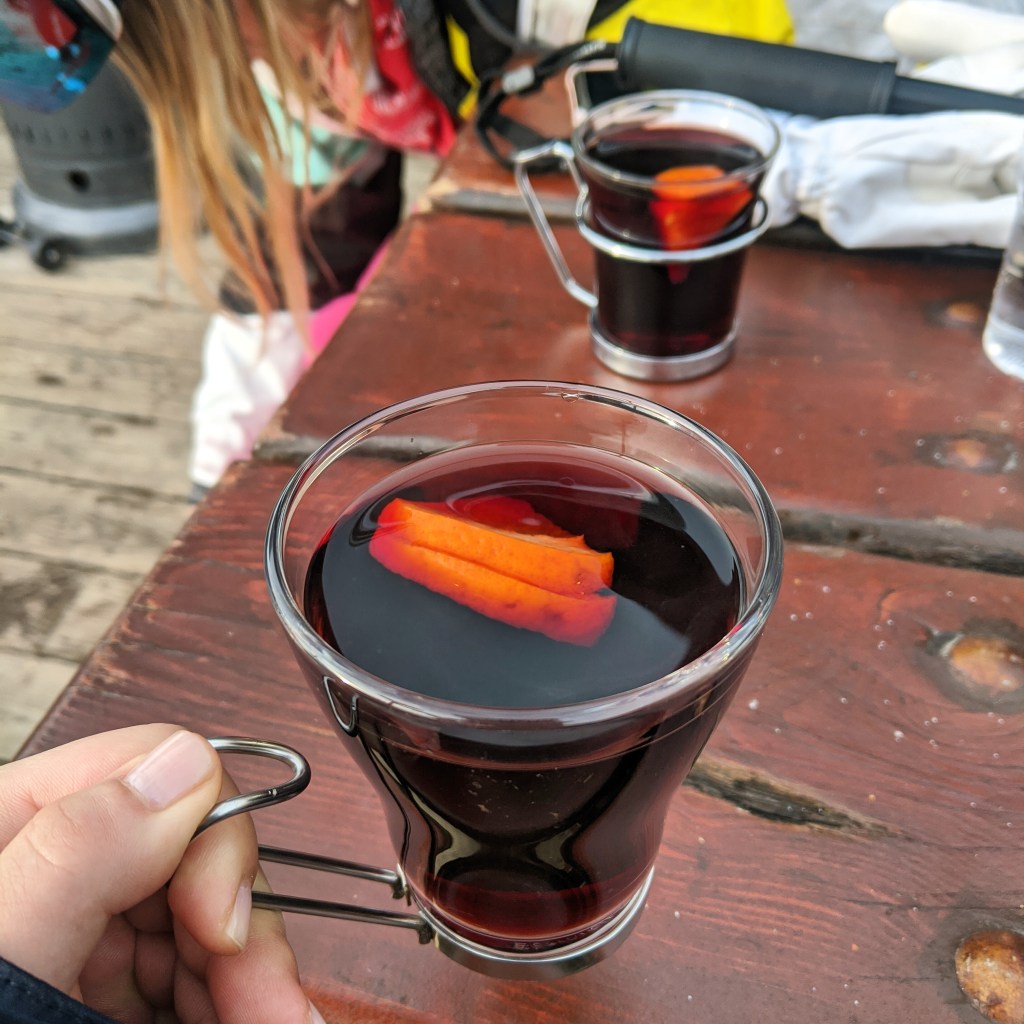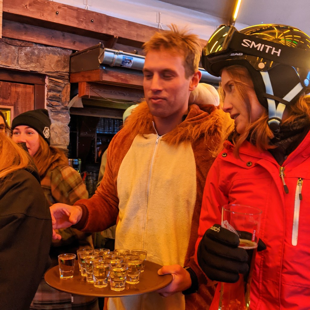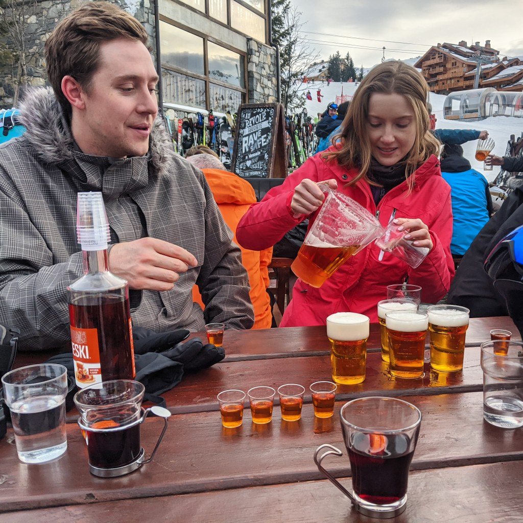 After a few more runs, we headed to Le Rond Point (Ronnie’s) for apres. I had some mulled wine and of course, we had shots.