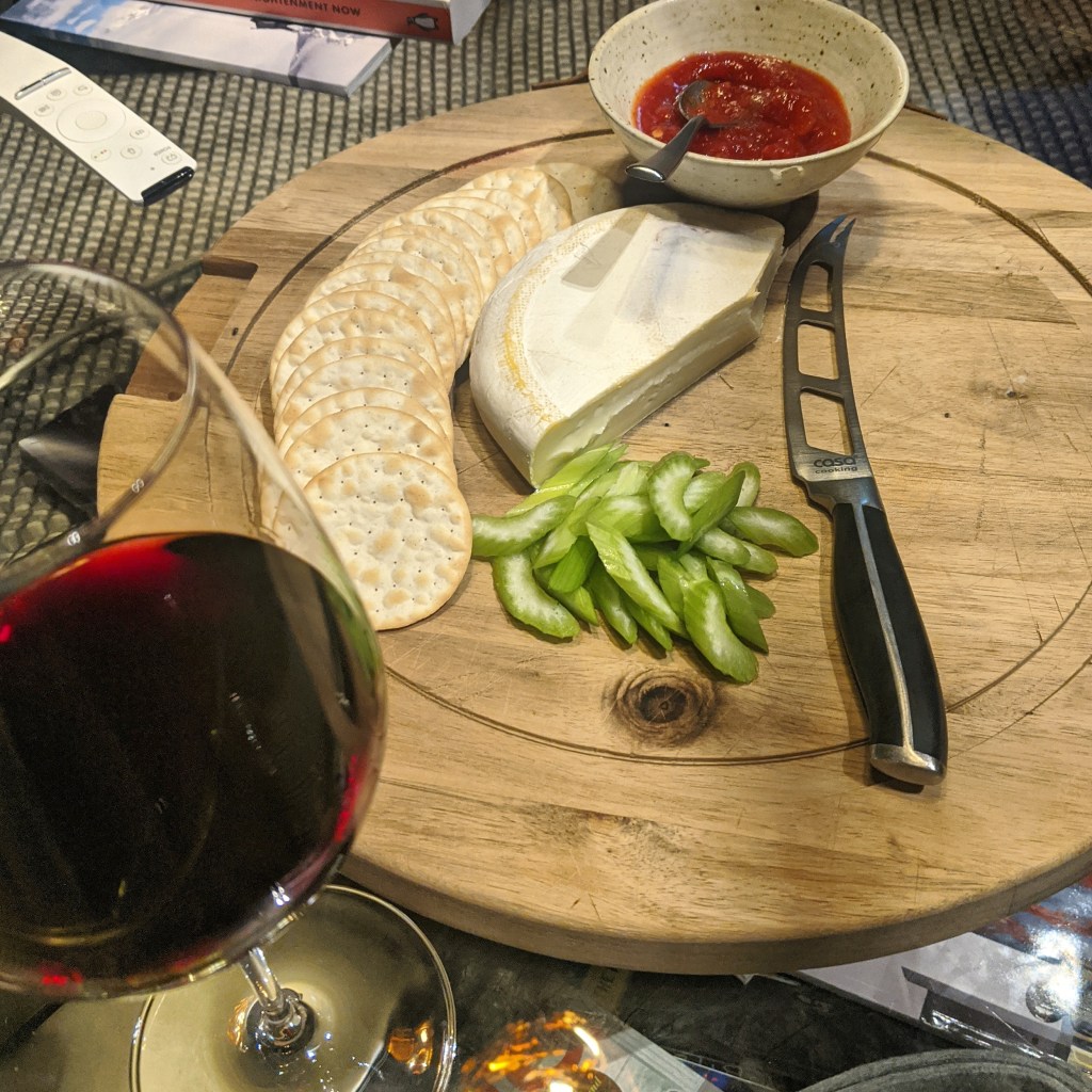 For dinner, we started off with Asian noodles with vegetables, roasted chicken for the main and pavlova for dessert. My favourite cheese mont d’or was served at the end.