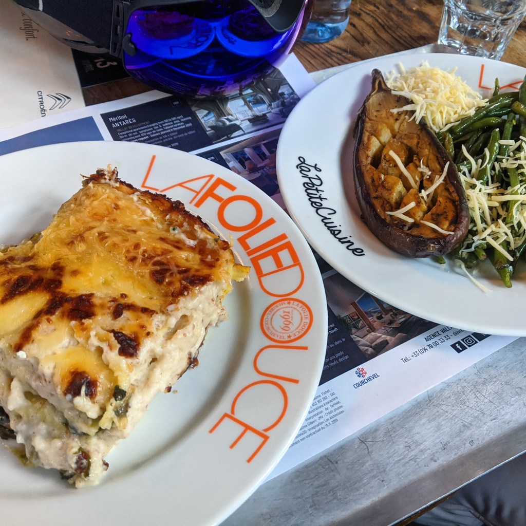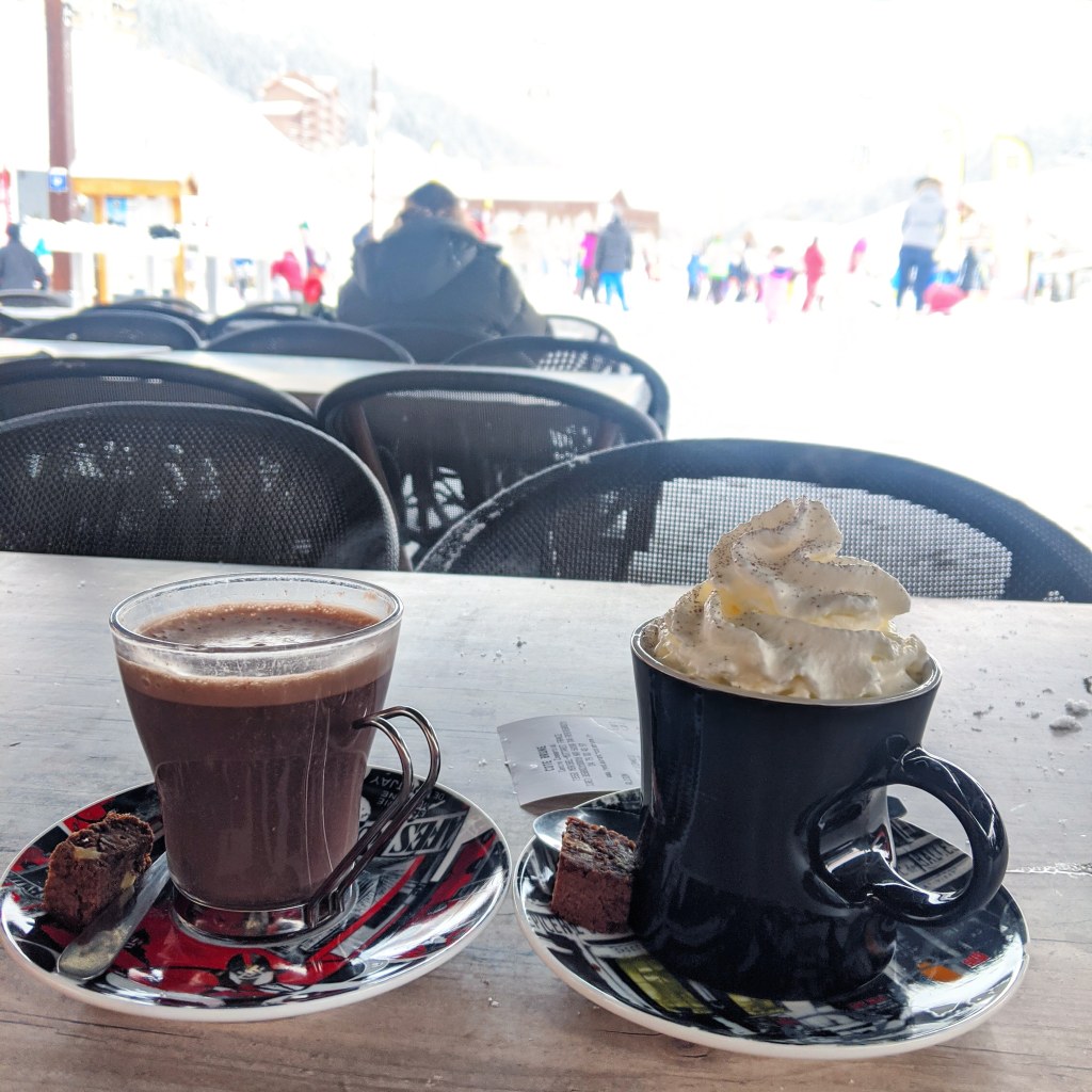 The weather was on and off today. We did a few runs and then I had some bad boot pain so relaxed a bit with a hot chocolate before heading back out again. For lunch, we went to La Folie Douce.