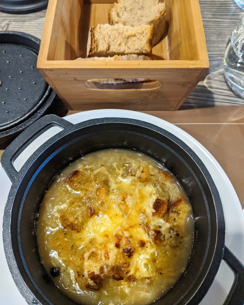We started off with some aperol spritz outside and when it started snowing, we went inside for lunch. We shared the french onion soup (it was so kind of them to split it up for us) and I had the duck breast. Both were very good.
