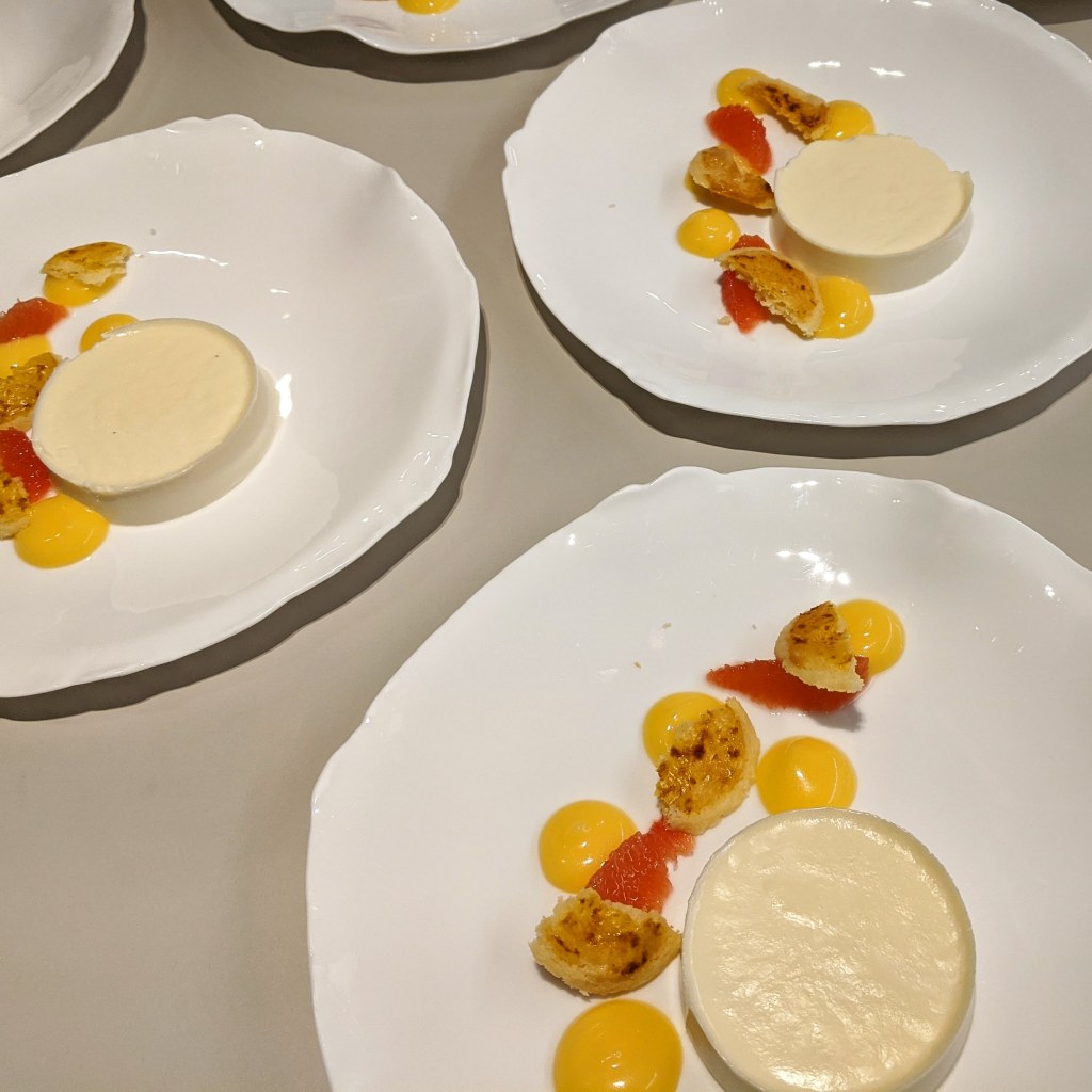 For dinner, we had some starters, a white onion soup, roasted sea bream for the main and pannacotta with grapefruit for dessert.