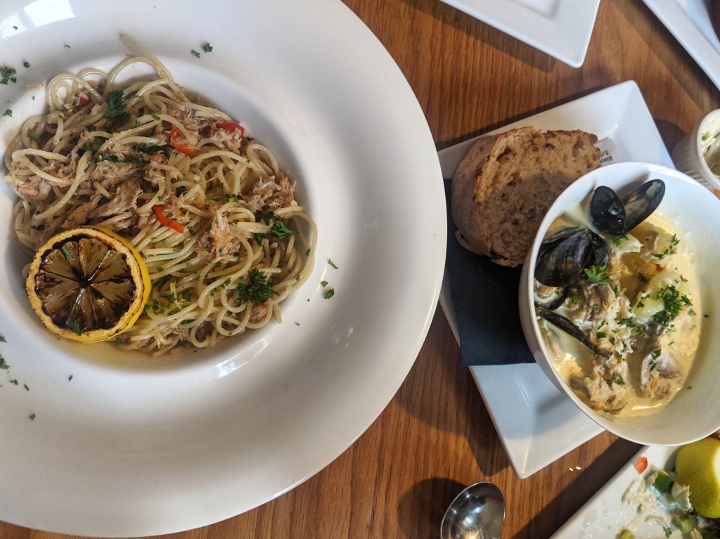 For dinner, we went to Garrison West and shared some langoustine and mussels for starters and I had the salmon for the main.