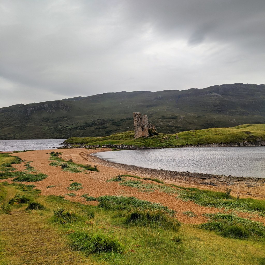 The weather wasn’t great today but in the morning, we drove from Lochinver to a few places like Achmelvich Beach and Ardvreck Castle.