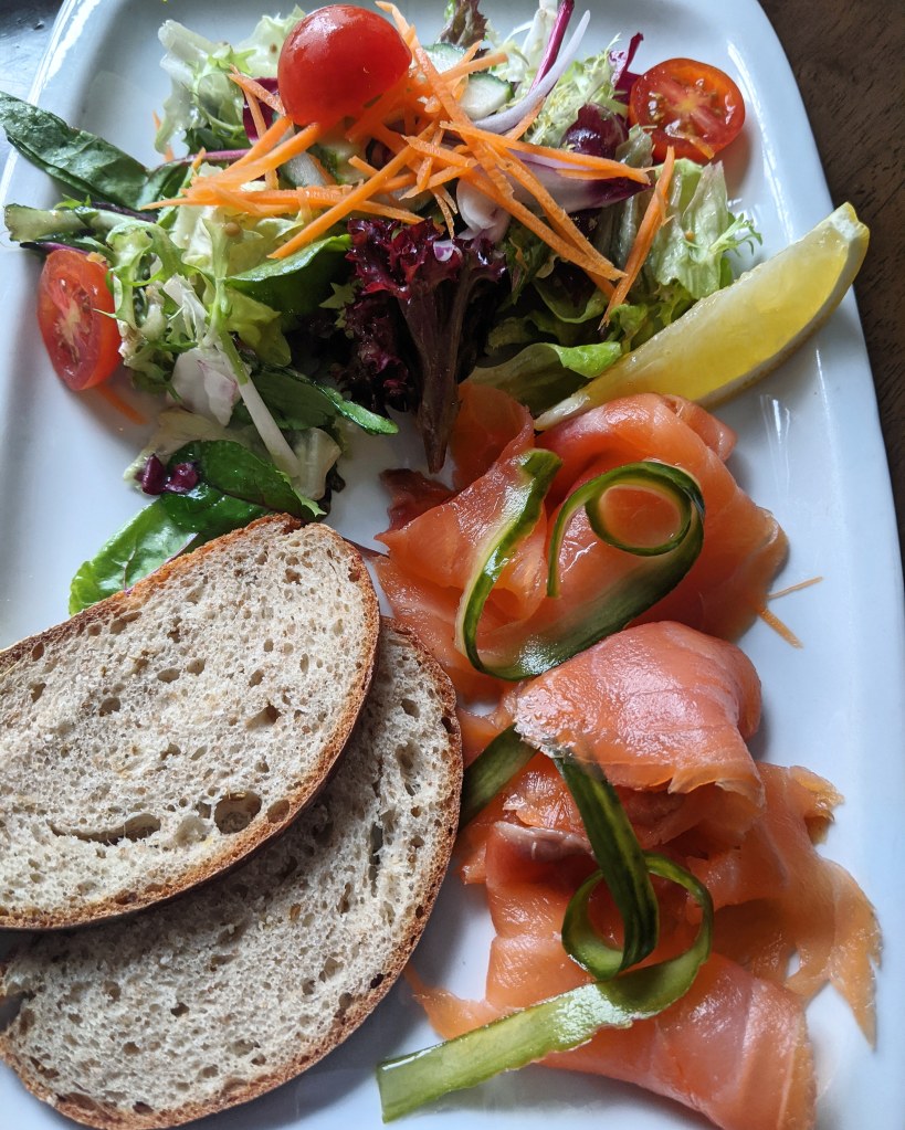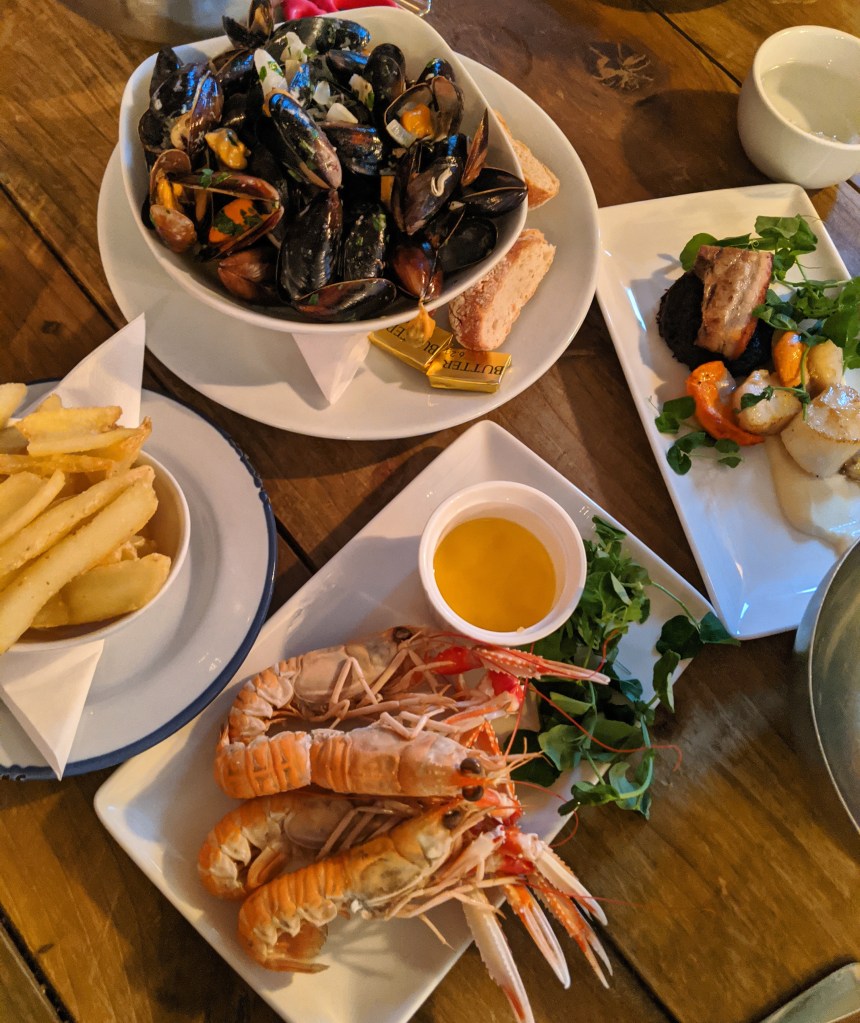 For dinner, we went to Ferry Boat Inn (FBI) and unfortunately they ran out of both oysters and langoustine! We shared the mussels and smoked salmon which were both great.