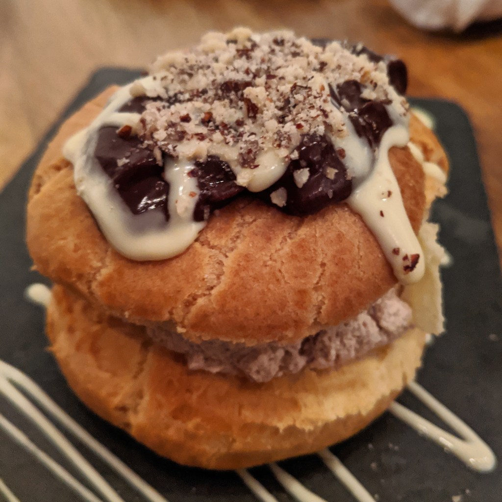 We went to Lime Tree for dinner. We shared the langoustines, fish, beef, vegetarian burritos and hazelnut Paris Brest.