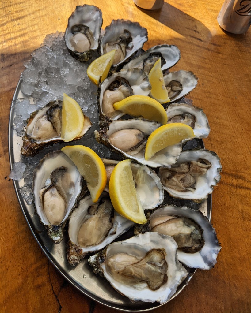 We went to The Steam Inn for some food and drinks before our ferry. It is a bit of an unassuming place with a beer garden out the back but the food was very good. We had oysters and the garlic, chilli prawns and had some prosecco to compliment it.