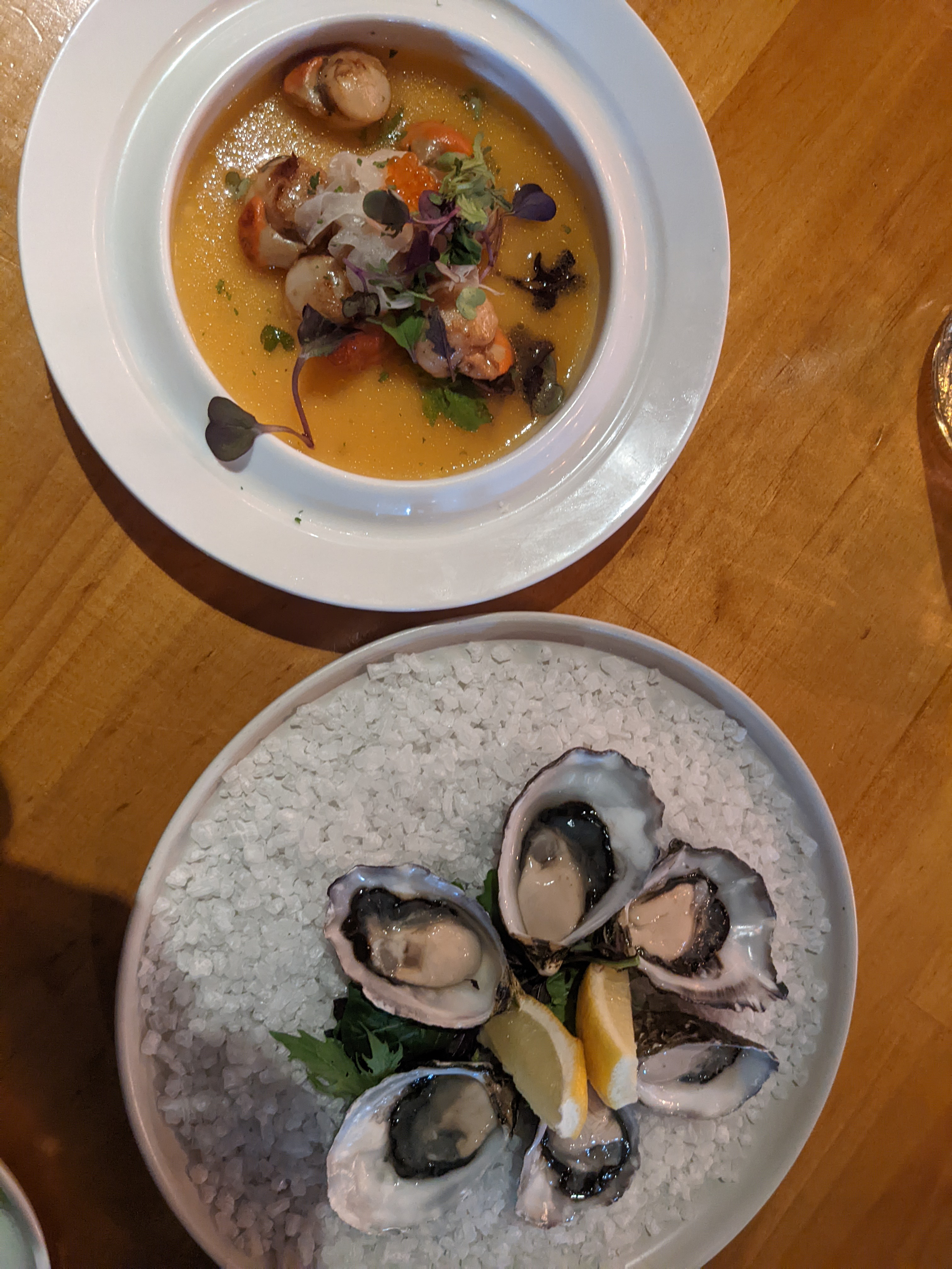 For dinner, we went to Cataract on Paterson. We shared the scallops and oysters and I got the market fish with vegetables which was good.