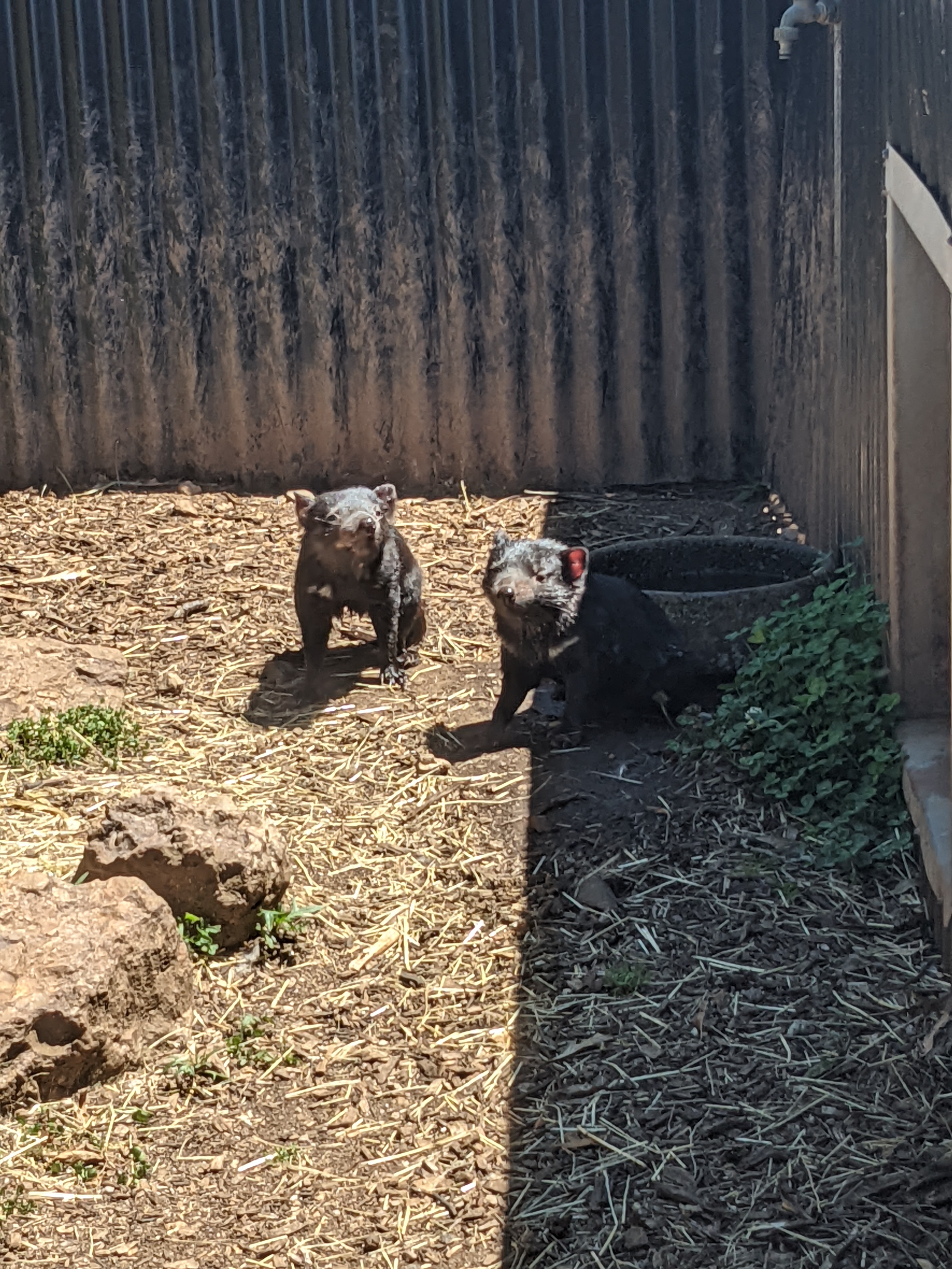 Our third stop was Trowunna Wildlife Sanctuary. Here we did a 1pm tour where we were introduced to the bear wombat, eastern and spotted quolls and the Tasmanian devils. You can also see the kangaroos roaming about and we saw various birds and echidnas.