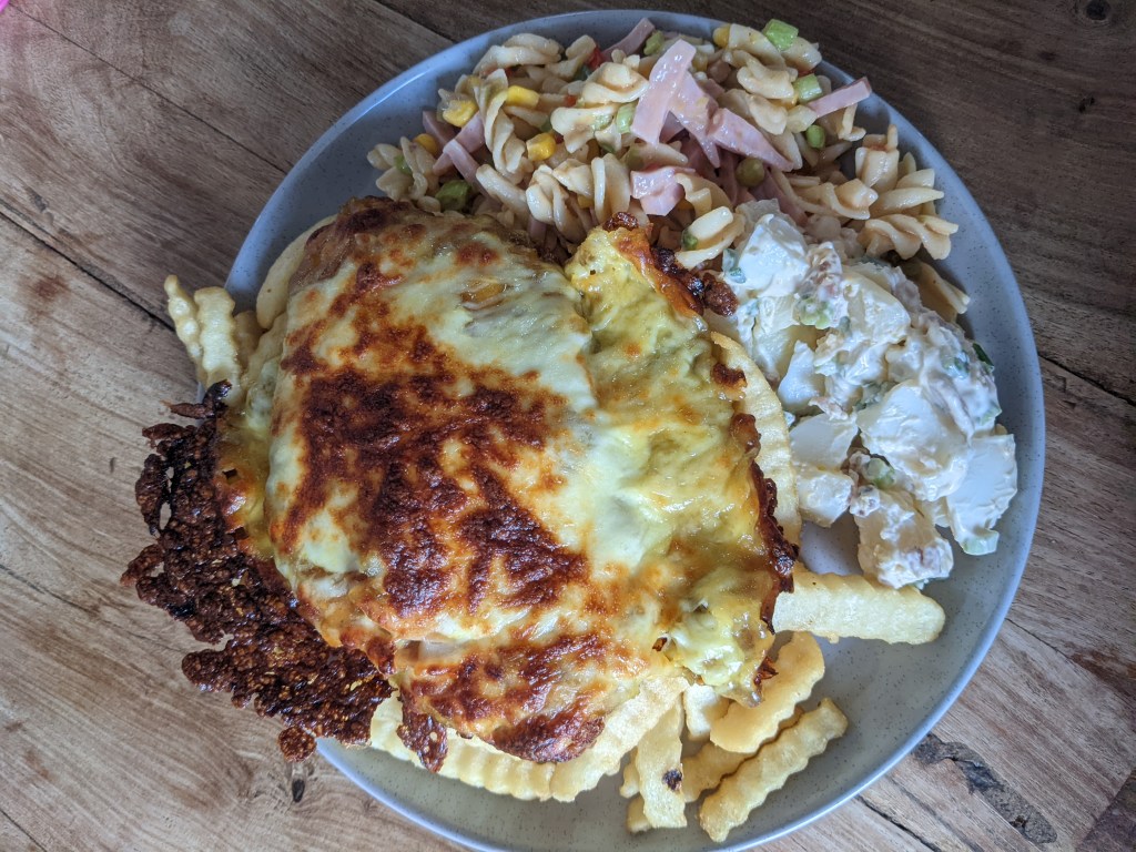 We stayed in an Airbnb in Tullah and went to the pub next door, Tullah Tavern and had the biggest chicken parmigiana for dinner. It’s huge so best to share.