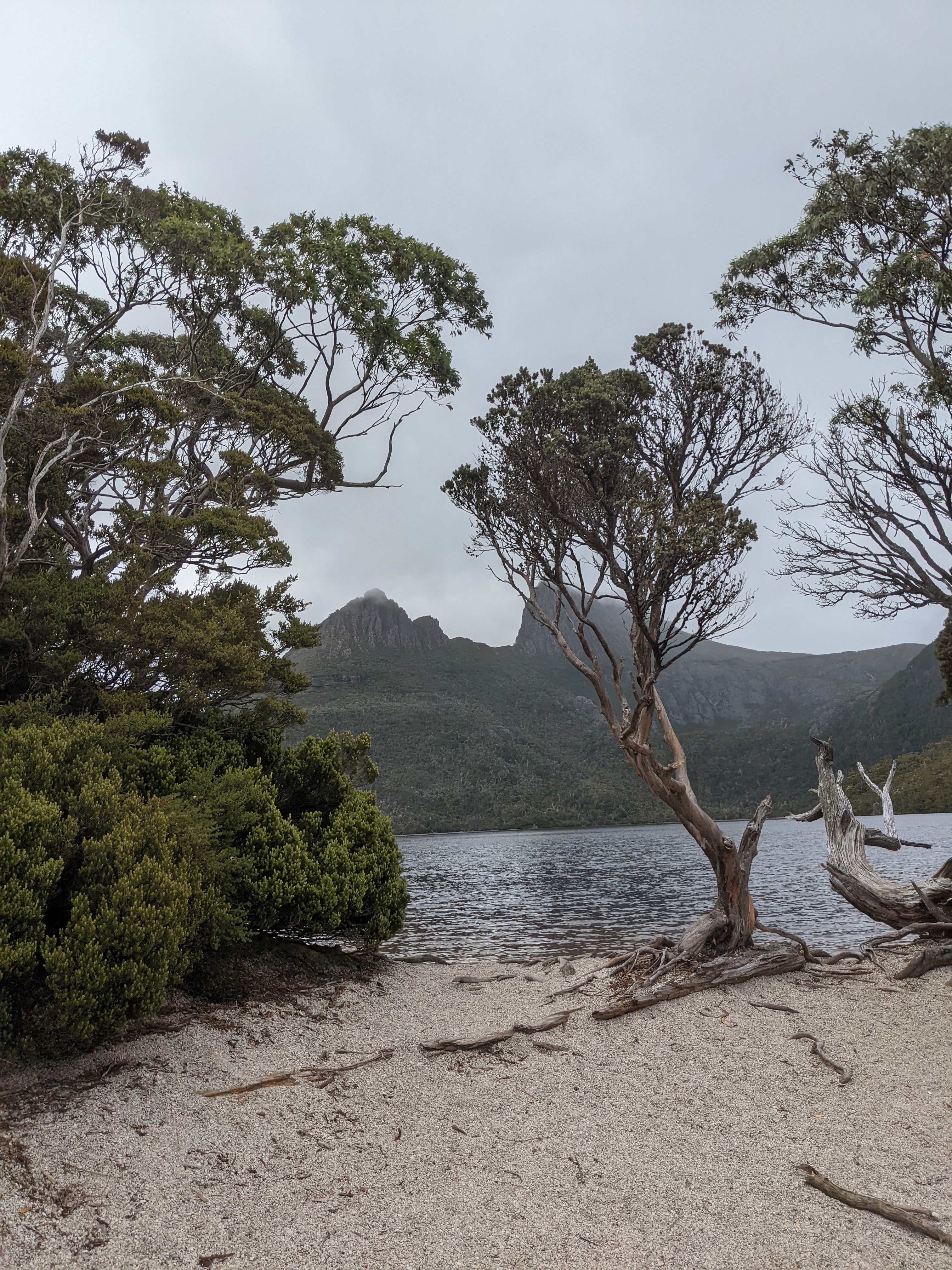 The next morning we left Tullah at 7:30am and arrived at the visitor centre at 8:10am. We bought a nationals parks pass ($80 for a car but other options are here) and then caught the first bus down to Dove Lake. There are 4 bus stops before Dove Lake which is the last stop.