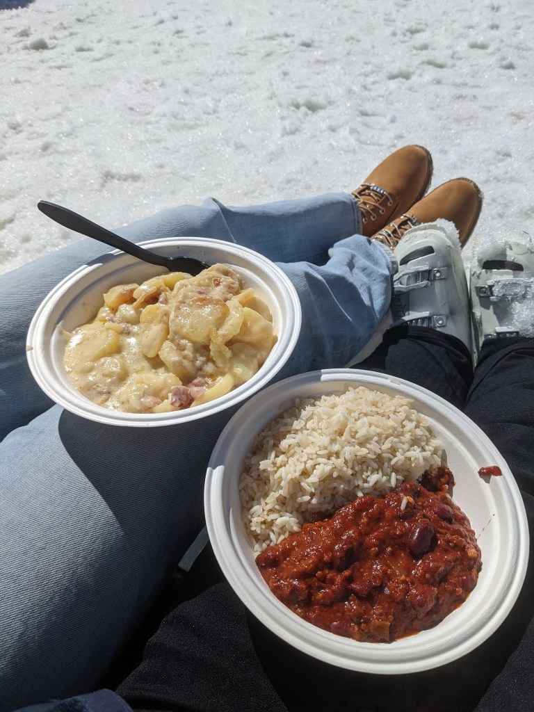 I did three half day morning lessons with ESF which were great as the instructor was fun and I improved because he took us on easier black runs which I wouldn’t have done if I was by myself. I went on my own for a bit after the lesson but by the afternoon, the snow was awful and too slushy to ski on.