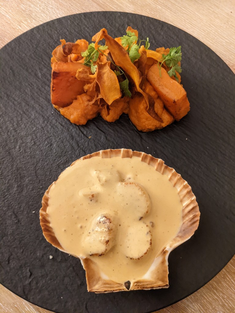 – Restaurant Genepi (Alpe d’Huez) – they did entree and plat for €35 and I got the salmon cappacio and the scallops with sweet potato which were both tasty. We also shared a bottle of Chablis and they gave a complimentary shot of genepi at the end.