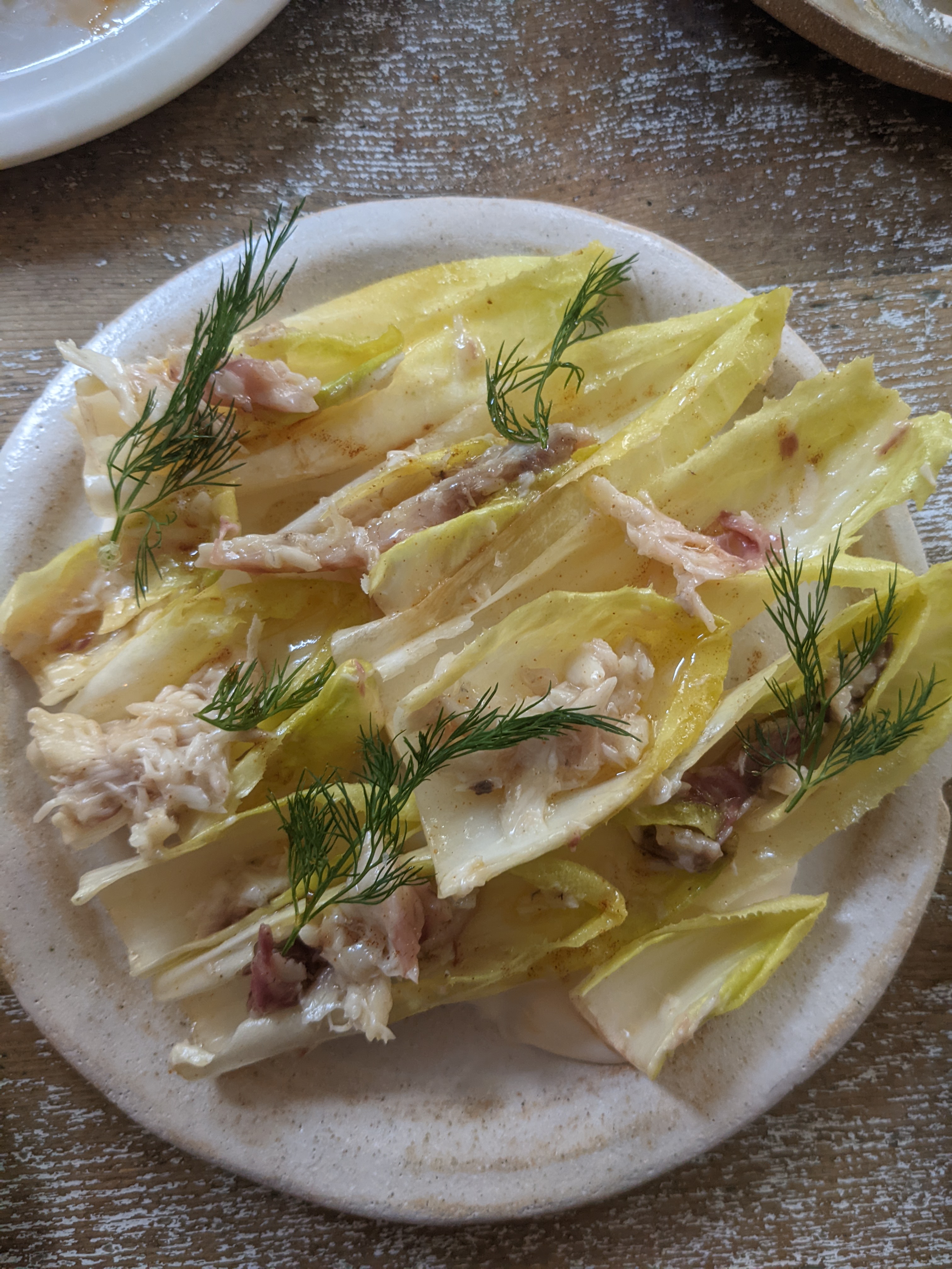 For lunch, we went to Septime which is on the top 50 world’s best restaurants. Bookings are hard to get (must call at 10am 3 weeks prior) but they do hold one walk in which is bar counter. We were lucky to go at 11:45am and ask for the table. The menu is a surprise (5 course for €65) and they give two snacks at the beginning which was a spring vegetable soup and dip with . Staff were excellent and super helpful and I’d highly recommend going if you can!