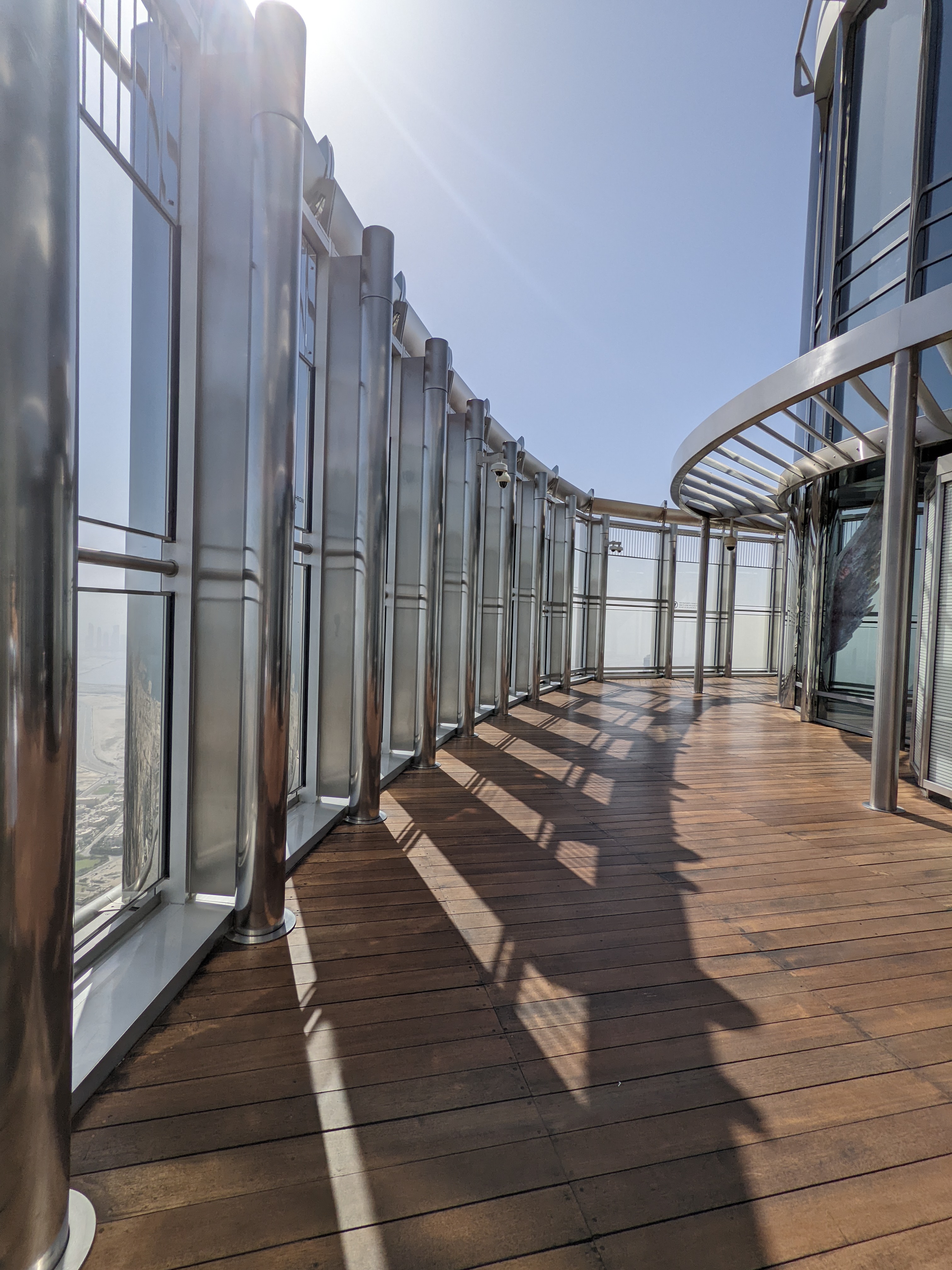 The next day, I booked a 9am slot to the top of the Burj Khalifa (level 124 and 125). It is the tallest building in the world standing at 828m. This time slot didn’t have many people around so it was nice to enjoy the views and take some photos from above with the amazing views across Dubai without the crowds.