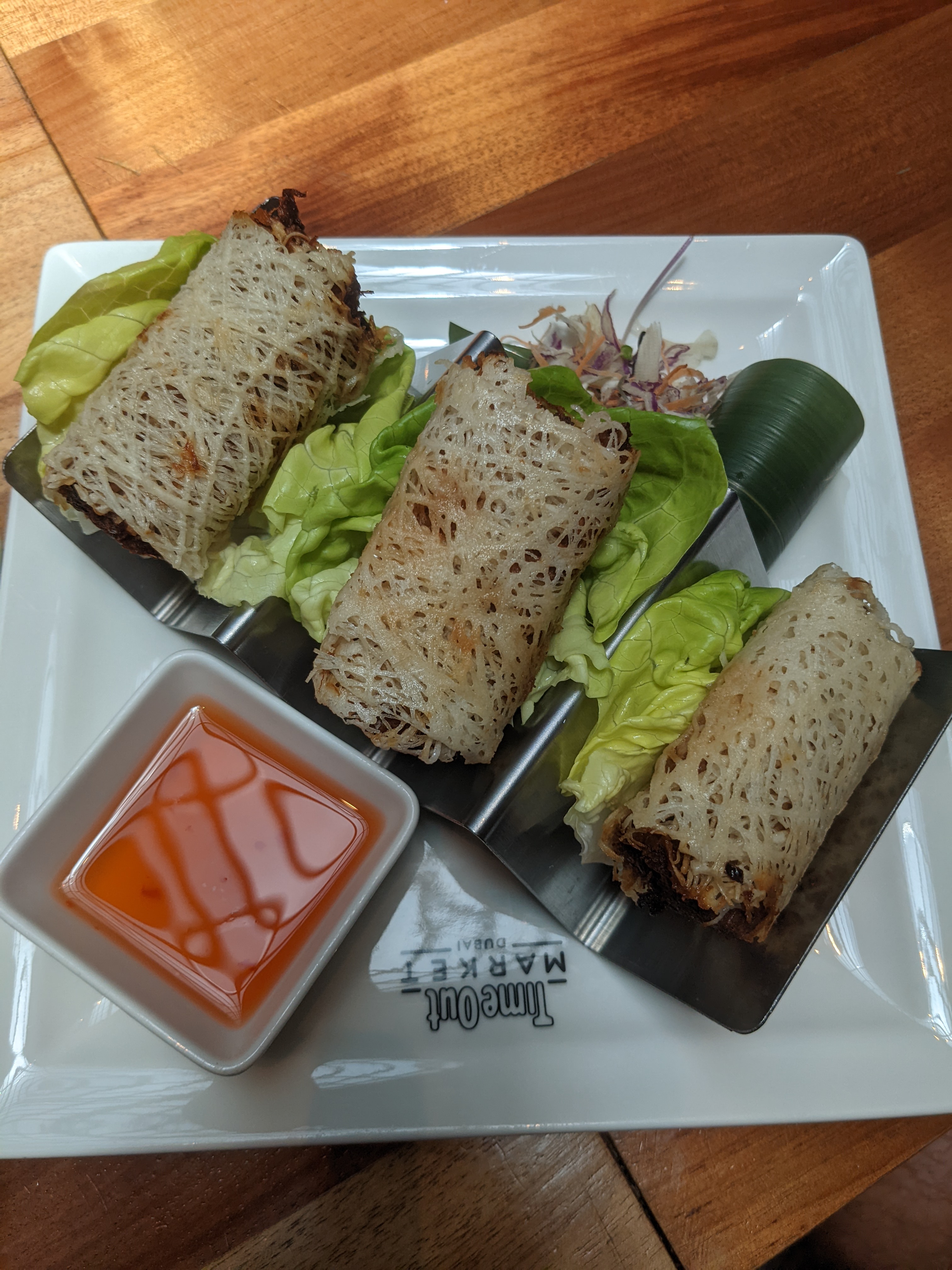 In the evening, we headed to the Jumeriah Al Qasr. We walked around and then got a little boat out to Pai Thai which was such a fun novelty. We sat at the bar first and had some cocktails which were delicious then waited for my neighbour Maaya and her friends to join. The food was delicious and authentic so I highly recommend it!