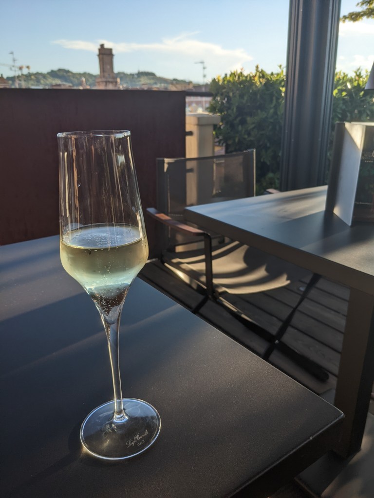 We took the train back to Bologna and went to Hotel Metropolitan rooftop for some drinks. We got complimentary snacks, had a couple of bottles of Ca’del Bosco and it had nice views of the city.
