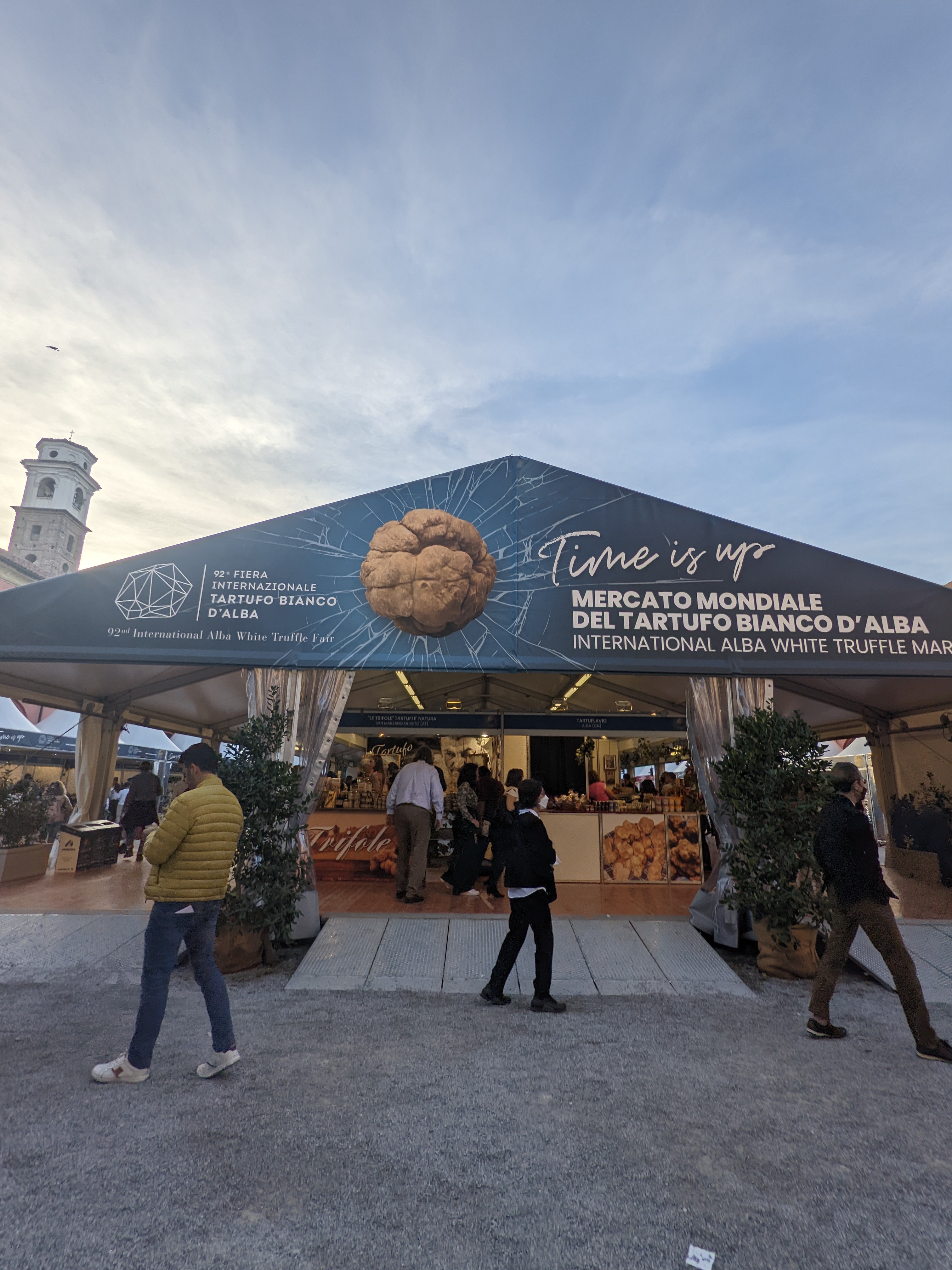 We then headed to the Fiera Internazionale de Tartufo Bianco d’Alba where we did two wine tastings and checked out each stall with its various samples.