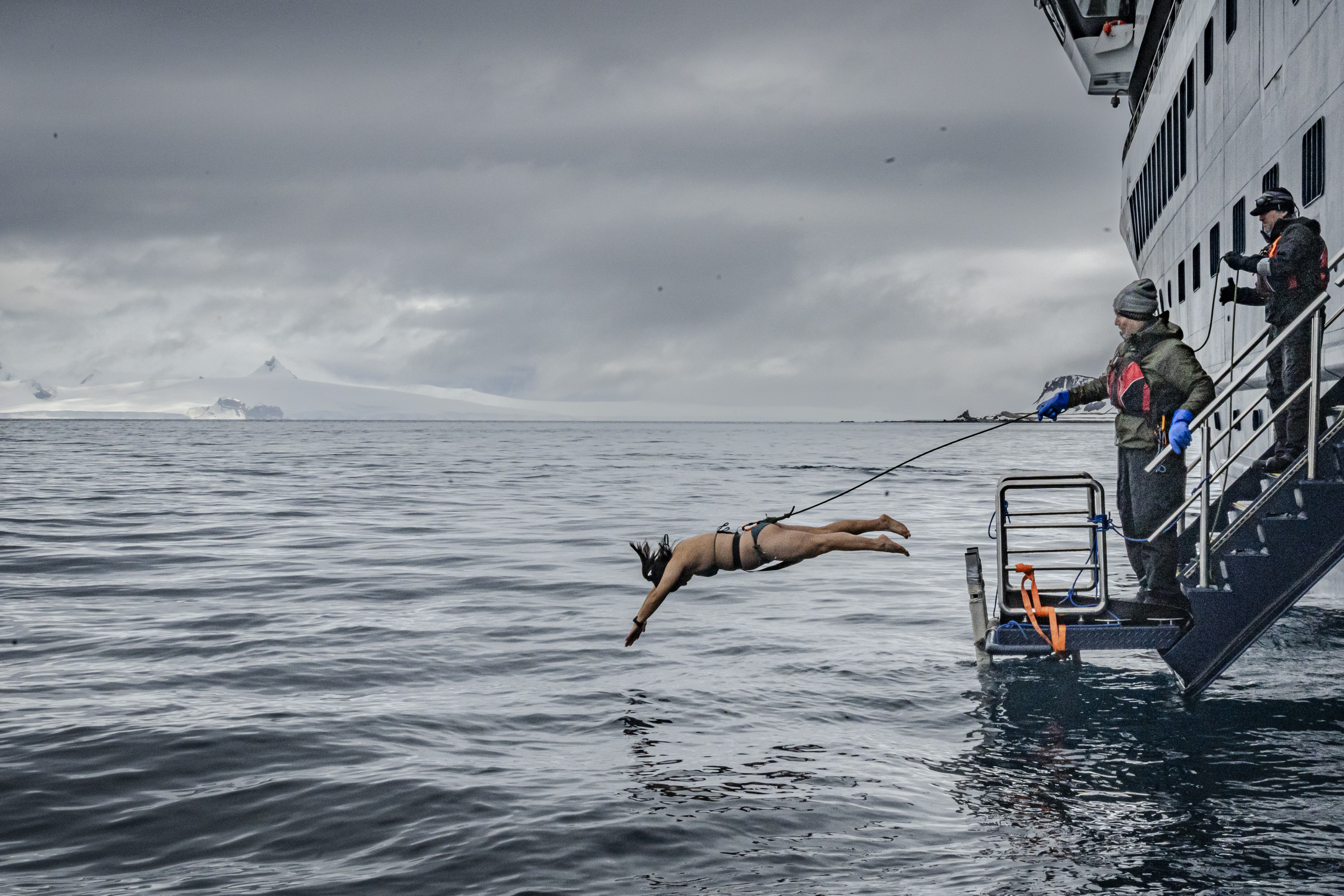 There is a running track on the ship so Laura and I did a 5km run. After, we did the polar plunge and the water temperature was around 1 degree celsius – it was fun and exhilarating to say the least!
